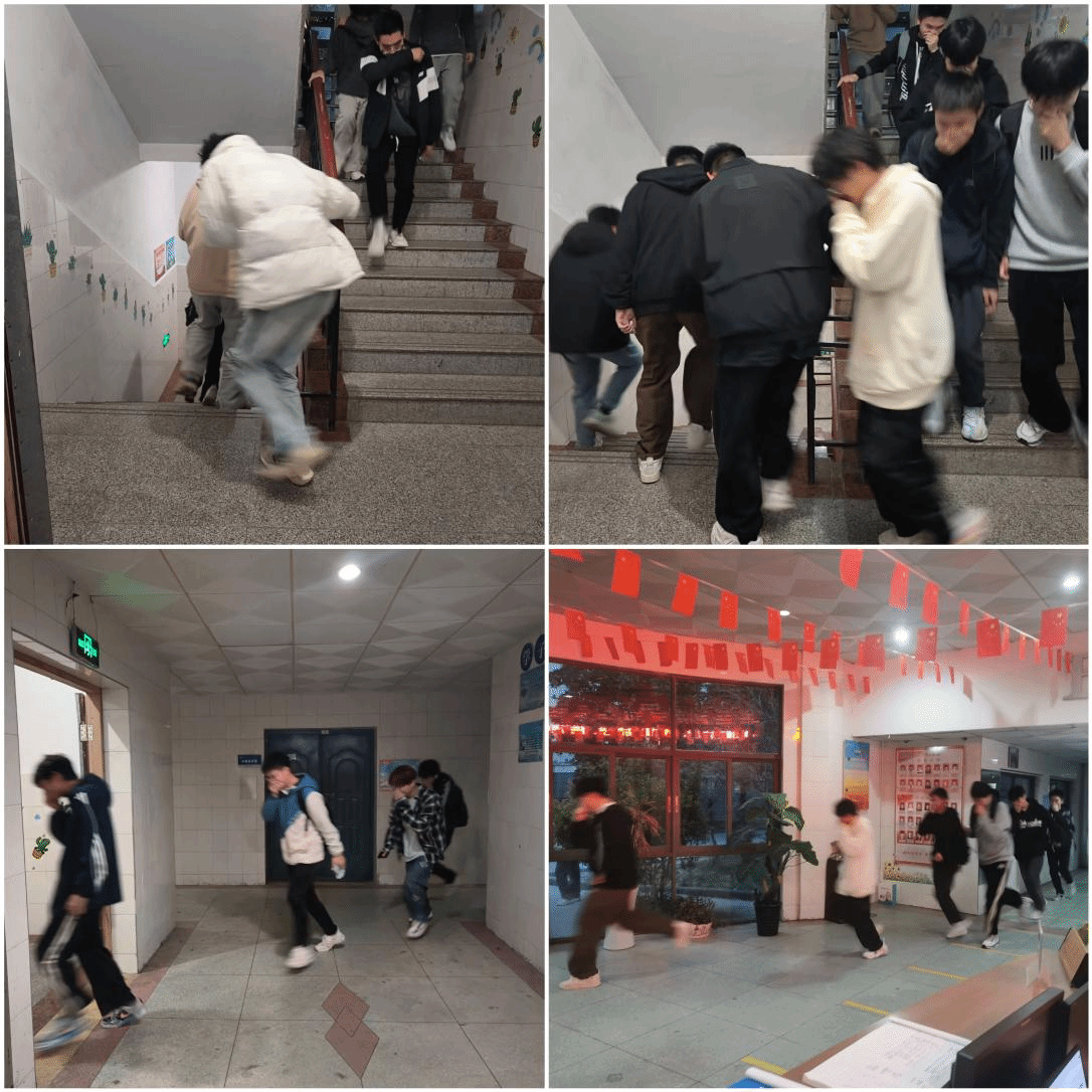 演练开始前,辅导员老师从火灾环境、逃生姿势及逃生路线等方面进行了细致的讲解,并明确指出在面对火灾危险时应沉着冷静、快速有序撤离。随着尖锐的警报声响起,学生干部立即向宿舍内学生进行大声示警,并提醒带好湿毛巾,捂住口鼻,低下身姿,保持沉着冷静,迅速通过安全通道撤离到安全区域。